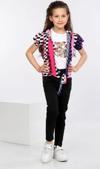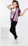 Mornio Kız Çocuk Yazlık ve Mevsimlik 3'lü Takım: Geometrik desen Alttan Bağlamalı Renkli Gömlek, Tişört ve Kot Pantolon
