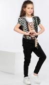 Mornio Kız Çocuk Yazlık ve Mevsimlik 3'lü Takım: Geometrik desen Alttan Bağlamalı Renkli Gömlek, Tişört ve Kot Pantolon
