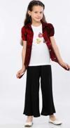 Mornio Kız Çocuk 3'lü Takım: Etnik Desenli Alttan Bağlamalı Gömlek, Sıfır Kollu T-shirt ve Geniş Paça Pantolon
