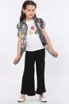 Mornio Kız Çocuk 3'lü Takım: Etnik Desenli Alttan Bağlamalı Gömlek, Sıfır Kollu T-shirt ve Geniş Paça Pantolon