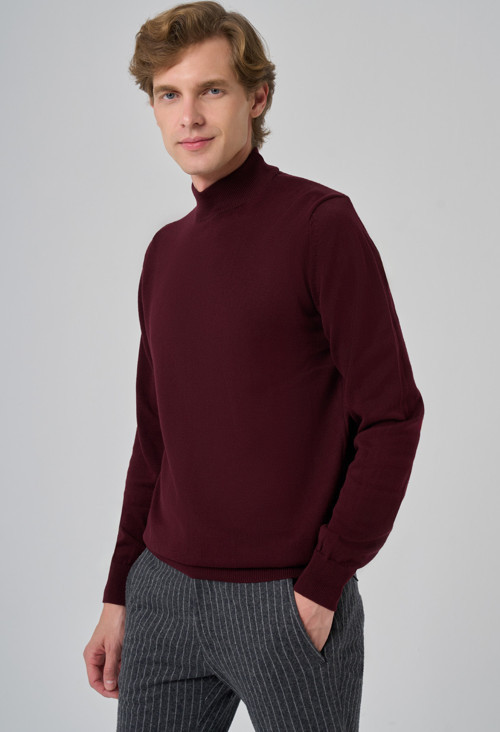 Morven Erkek Koyu Bordo Basic Yarım Balıkçı Yaka Dynamic Fit Rahat Kesim Triko
