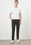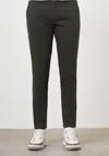 Detay: Yan cepli, düğme ve fermuar kapamalı pantolon ;