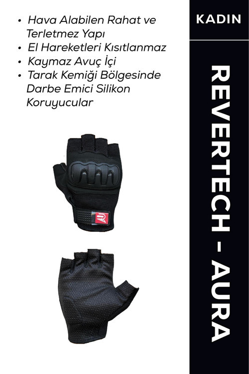 Revertech Aura Siyah / Yarım Parmak - Kaymaz Avuç İçi Kadın Motosiklet Eldiveni