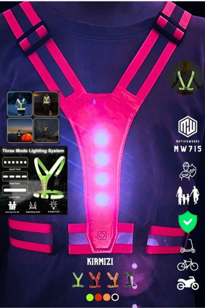 Motiva Reflektif Işıklı Yelek Kırmızı Fosforlu Neon Bisiklet, Motosiklet,Scooter Gece İkaz Uyarı Reflektör