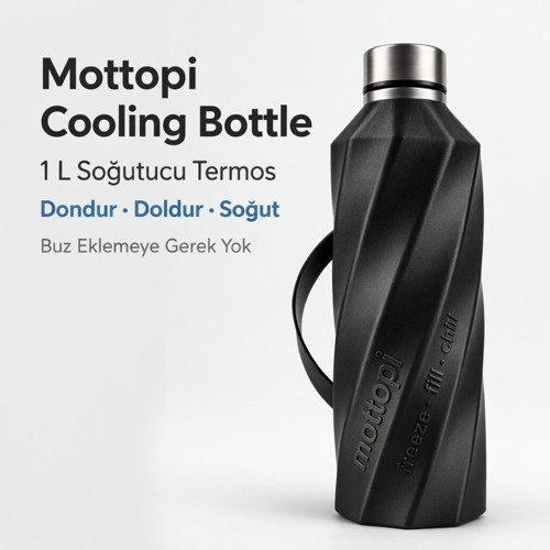 Mottopi Cooling Bottle, içeceklerinizi buz kullanmadan hızlıca soğutmak için tasarlanmış yenilikçi bir soğutucu termostur. Boşken dondurun, içeceğinizi ekleyin ve dakikalar içinde serinletin. Ürün gövdesinde yer alan 400 gram termojel, −18 °C’de donduğunda soğutma için hazır hale gelir ve içeceğin ısısını hızla çekerek kısa sürede serinletir.