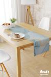 Moud's Mavi Yaz Çiçekleri Desenli Baskılı Süet Runner Masa Örtüsü