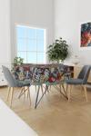 Moud'S Mavi Palmiyeler Desenli Yuvarlak Süet Dertsiz Masa Örtüsü - Image 1