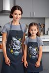 Anne Kız 2'li Yemek Zamanı Desenli Mutfak Önlüğü, Aşçı Önlüğü, Çocuk Önlüğü, Etkinlik Önlüğü