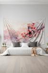 Çiçek Dalı ve Kelebek Desenli Duvar Halısı Duvar Örtüsü Tapestry Süet Dokulu Kumaş