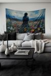 Moud'S Çiçek Tarlasındaki Yalnızlık Desenli Duvar Halısı Duvar Örtüsü Tapestry Süet Dokulu Kumaş