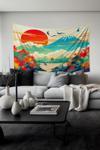 Doğanın Renkli Uyanışı Desenli Duvar Halısı Duvar Örtüsü Tapestry Süet Dokulu Kumaş