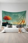 Moud'S Gün Batımında Yalnızlık Desenli Duvar Halısı Duvar Örtüsü Tapestry Süet Dokulu Kumaş