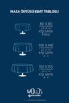 Ürün içeriği: 1 adet masa örtüsü Ürün boyut seçenekleri: 80x80cm, 100x140cm, 140x140cm, 140x180cm, 155x155cm, 160x220cm, 160x260cm Ölçülerde (+ -) 1,2 cm değişiklik olabilir.