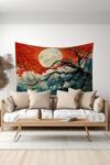 Kırmızı Gece Desenli Duvar Halısı Duvar Örtüsü Tapestry Süet Dokulu Kumaş