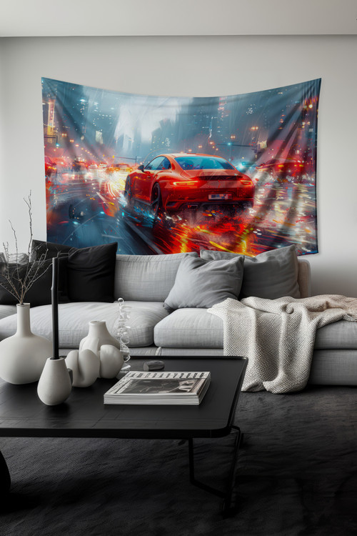 Moud'S Kırmızı Spor Araba Desenli Duvar Halısı Duvar Örtüsü Tapestry Süet Dokulu Kumaş