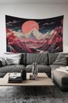 Kızıl Dağ Desenli Duvar Halısı Duvar Örtüsü Tapestry Süet Dokulu Kumaş