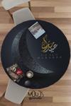 Moud's Lacivert Ramazan Ayı Desenli Süet Kumaş Dertsiz Yuvarlak Masa Örtüsü Ramadan