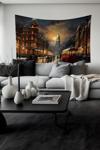 Moud'S Londra Kış Akşamı Desenli Duvar Halısı Duvar Örtüsü Tapestry Süet Dokulu Kumaş