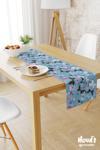 Moud's Turkuaz Flora Serisi Desenli Baskılı Süet Runner Masa Örtüsü