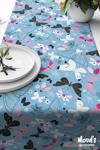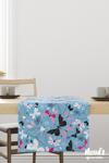 Moud's Mavi Kelebekler Desenli Baskılı Süet Runner Masa Örtüsü