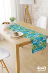 Moud's Mavi Yaz Çiçekleri Desenli Baskılı Süet Runner Masa Örtüsü