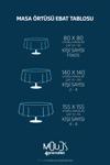 Ürün içeriği: 1 adet masa örtüsü Ürün boyut seçenekleri: 80x80cm, 100x140cm, 140x140cm, 140x180cm, 155x155cm, 160x220cm, 160x260cm Ölçülerde (+ -) 1,2 cm değişiklik olabilir.