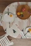 Moud's Mirror Flowers Çiçek Desenli Süet Kumaş Dertsiz Oval Masa Örtüsü