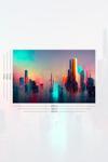 Moud's markasının sunduğu bu duvar halısı, neon şehir manzarası deseniyle dikkat çeker.
