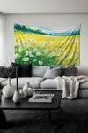 Papatya Tarlası Desenli Duvar Halısı Duvar Örtüsü Tapestry Süet Dokulu Kumaş