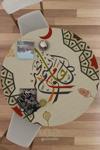 Moud's Ramazan Pastel Kaligrafi Desenli Süet Kumaş Dertsiz Yuvarlak Masa Örtüsü Ramadan