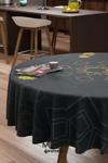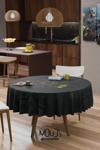 Ramazan Siyah Sekizgen Desenli Süet Kumaş Dertsiz Yuvarlak Masa Örtüsü Ramadan