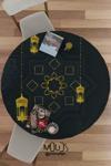 Moud's Ramazan Siyah Sekizgen Desenli Süet Kumaş Dertsiz Yuvarlak Masa Örtüsü Ramadan