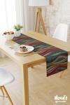 Moud's Renkli Çizgili Halı Desenli Baskılı Süet Runner Masa Örtüsü