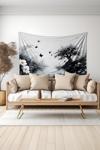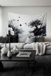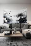 Siyah Doğa Manzarası Desenli Duvar Halısı Duvar Örtüsü Tapestry Süet Dokulu Kumaş