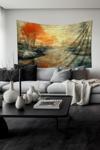 Moud'S Sonbahar Nehir Manzarası Desenli Duvar Halısı Duvar Örtüsü Tapestry Süet Dokulu Kumaş