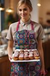 Moud'S Süet Kumaş Renkli Fincanlar Desenli Mutfak Önlüğü, Aşçı Önlüğü, Garson Önlüğü, Restoran Önlük - Image 1