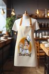 Moud's Süet Kumaş Best Chef Man Desenli Mutfak Önlüğü, Aşçı Önlüğü, Garson Önlüğü, Restoran Önlük