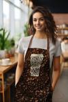 Süet Kumaş Coffee Time Desenli Mutfak Önlüğü, Aşçı Önlüğü, Garson Önlüğü, Restoran Önlük