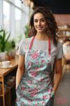 Süet Kumaş Madame Spring Desenli Mutfak Önlüğü, Aşçı Önlüğü, Garson Önlüğü, Restoran Önlük