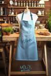 Moud's Süet Kumaş Mavi Sweet Home Desenli Mutfak Önlüğü, Aşçı Önlüğü, Garson Önlüğü, Restoran Önlük