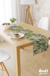 Moud's Yeşil Krem Dallar Desenli Baskılı Süet Runner Masa Örtüsü