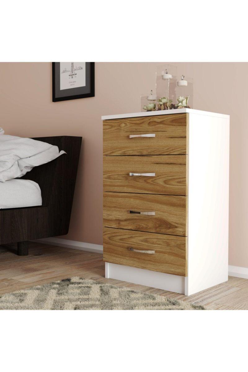 Moxen Mobilya Beyaz- Ceviz 4 Çekmeceli Komodin Kmd4002