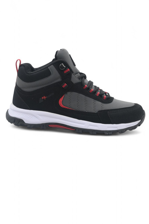 Dayanıklı Dış Yüzey: Botun siyah ve gri tonlardaki sentetik ve süet görünümlü panelleri, soğuk havaya ve neme karşı koruma sağlayarak ayaklarınızı sıcak tutar. Kırmızı dikiş ve detaylar (bağcık halkaları), bota sportif ve dinamik bir hava katar.