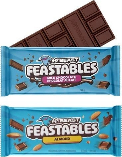 Mr Beast Feastables Milk Chocolate 60 gr x Mr Beast Feastables Almond Chocolate 60 gr