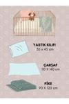 Beşik seti olarak pike takımı 4 mevsim kullanıma uygundur hem bahar hem kış aylarında rüzgarı ve soğuğu keserken hava alan yapısı ile aynı zamanda bebeğin terlemesine de engel olur.