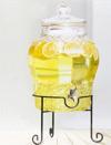 Musluklu Cam Damacana Limonata Su Sebili Şerbetlik 8 LT (SİYAH Renk) Ferforje ayak ve kapak metaldir.