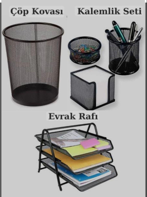 3 katlı metal evrak rafı Metal fileli 3lü kalemlik Ofis çöp kovası