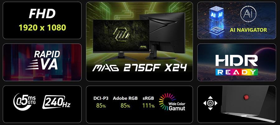 MSI 27 MAG 274CF X24 1920x1080 (FHD) 16:09 CURVE 1500R RAPID VA 240Hz 0.5MS (Min.) FREESYNC PREMIUM GAMING MONITOR