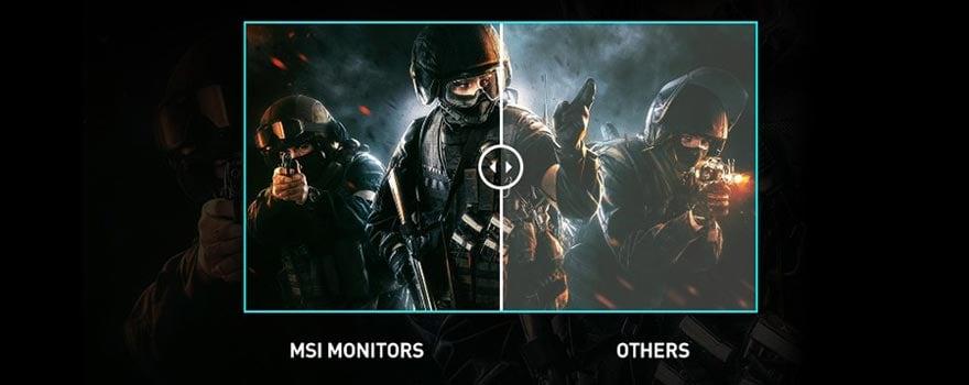 MSI oyuncu monitörleri, optimal izleme açısından taviz vermeden sisteminizi istediğiniz gibi konuşlandırmanıza olanak sağlar. Ekrana bakma açısı arttıkça renkleri ve detayları değişmeden görme olanağınız, diğer monitörlere oranla çok daha fazladır.
