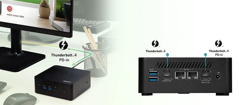Thunderbolt 4 bağlantısı 100W’a kadar güç iletimi özelliği ile tek bir port üzerinden hem görüntü çıkışı hem de elektrik iletimi sunar.